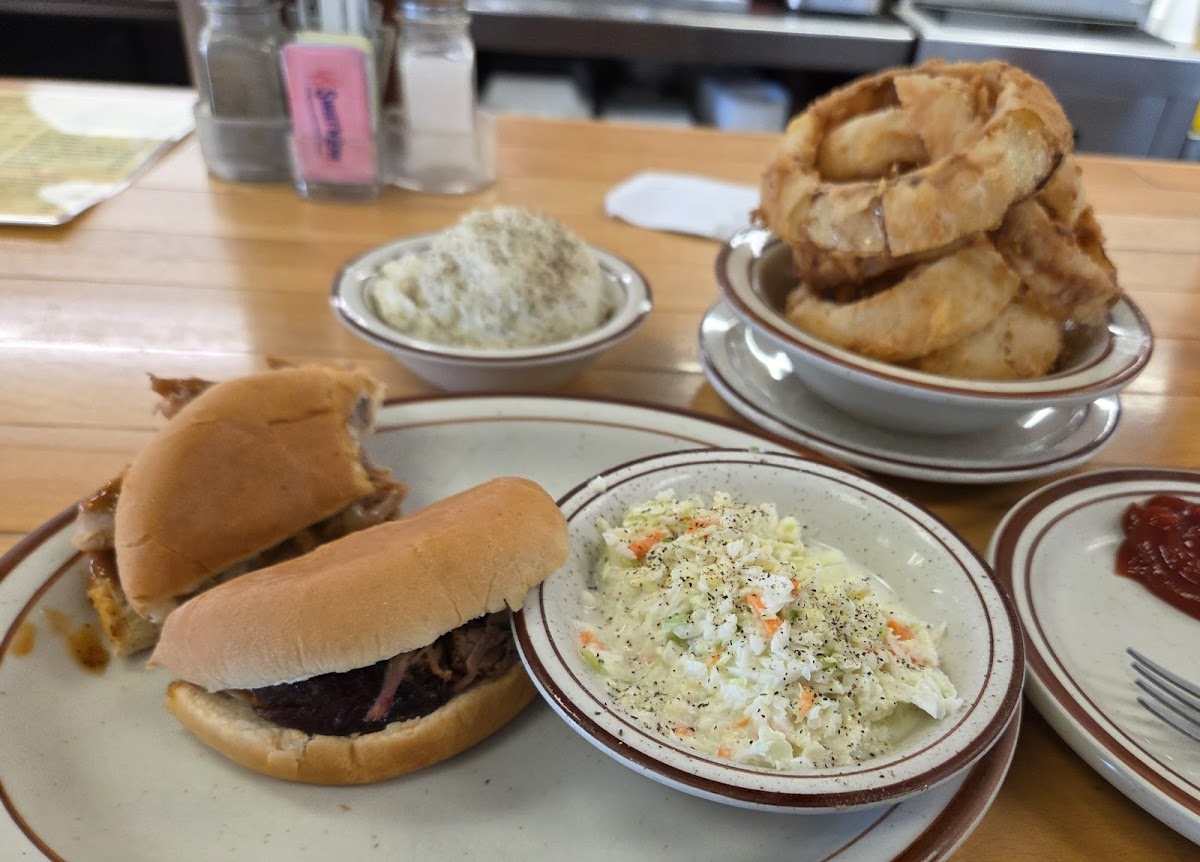 Stopped in for lunch and got the pork BBQ sandwich with fries and beans and a drink. The BBQ sandwich didn't have a lot of meat but aas enough for lunch and it tasted great with some of there sauce on it. The price was also great for a lunch stop. The waitress was fast and friendly. Highly recommend stopping by this place for lunch or dinner.